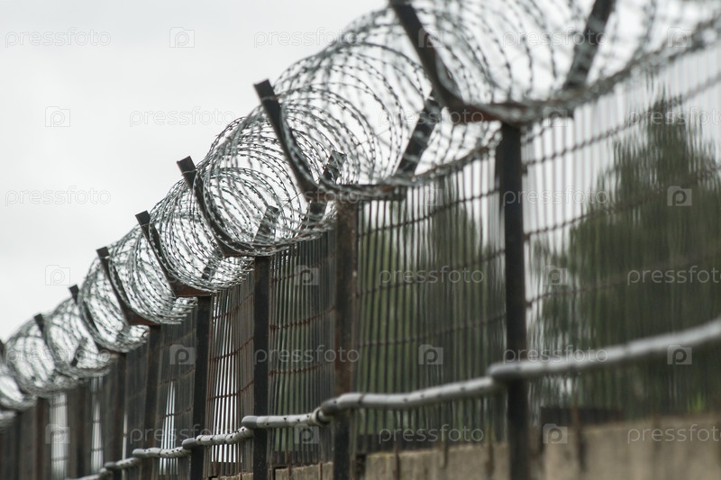 Россия.Санкт-Петербург.Запретная зона.Ограждение из колючей проволоки.Россия.Санкт-Петербург.Ограниченный участок.Закладка с колючей проволокой. предупредительный знак