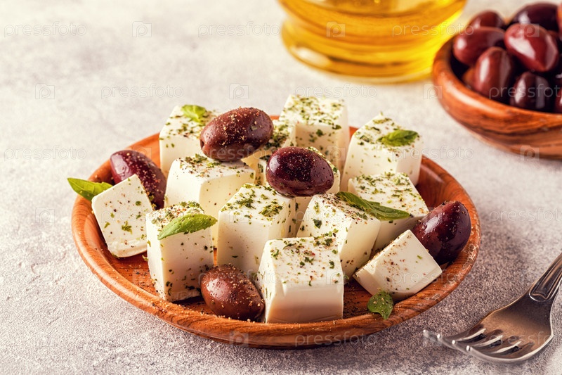 Греческий сыр фета с орегано и оливками