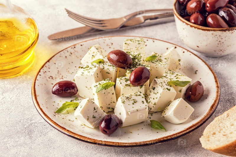 Греческий сыр фета с орегано и оливками