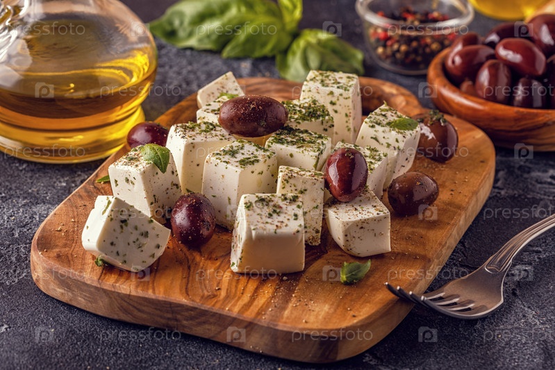 Греческий сыр фета с орегано и оливками