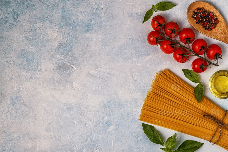 Фон итальянской кухни с макаронами, специями и овощами