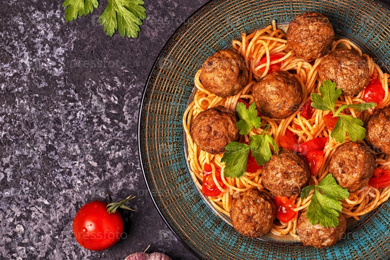 Жареные фрикадельки со спагетти
