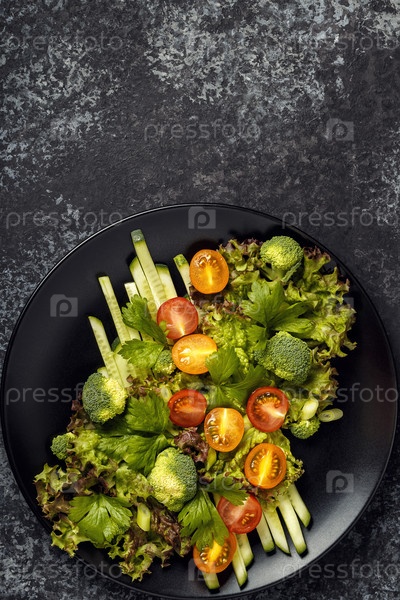 Салат из свежих овощей, вид сверху