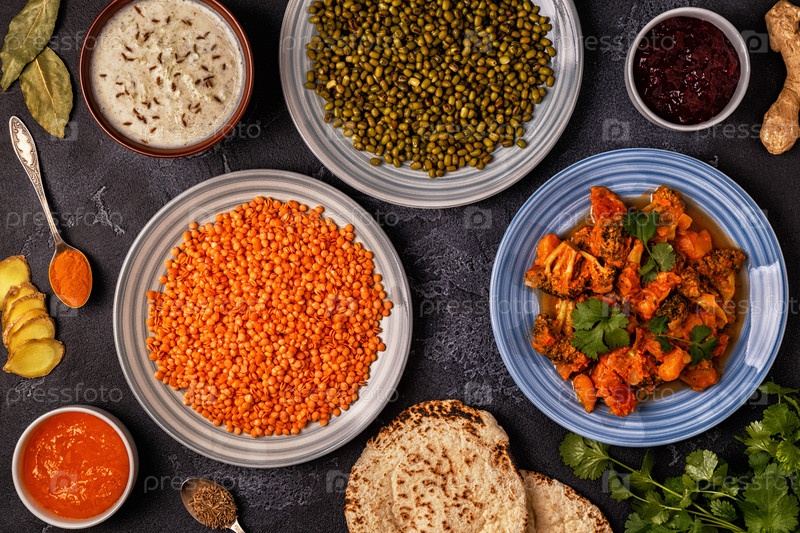 Традиционное индийское карри с чечевицей, бобами мунг