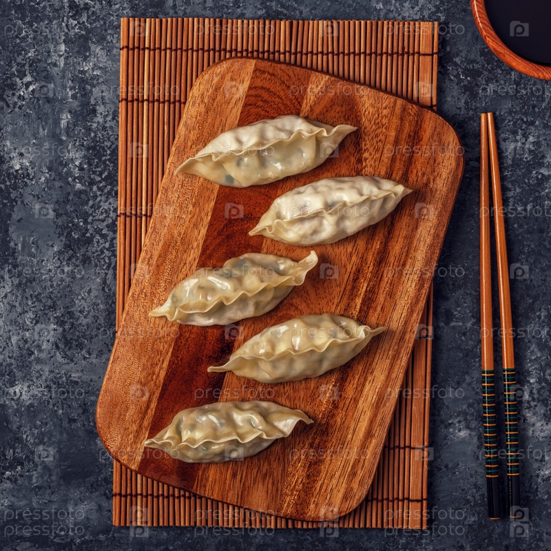 Свежие пельмени на фоне темного камня