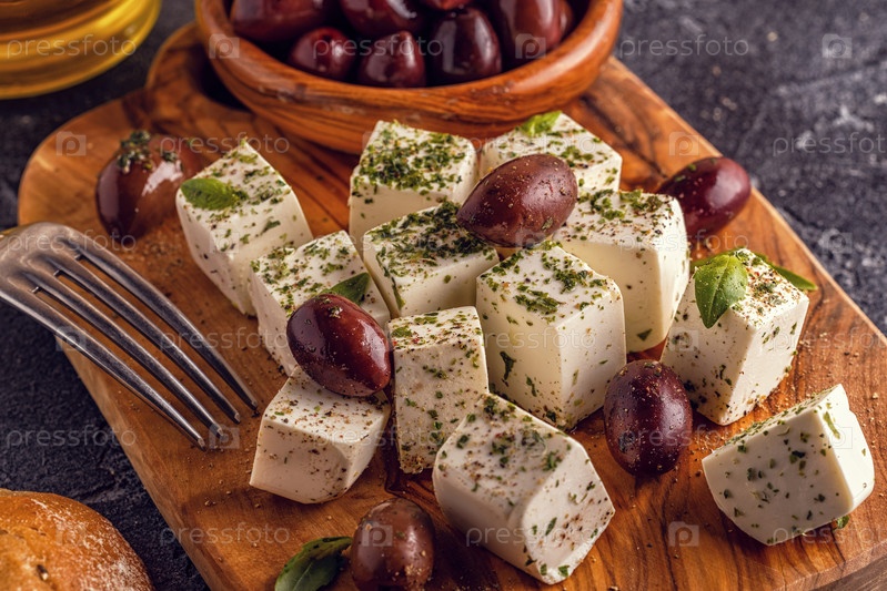 Греческий сыр фета с орегано и оливками