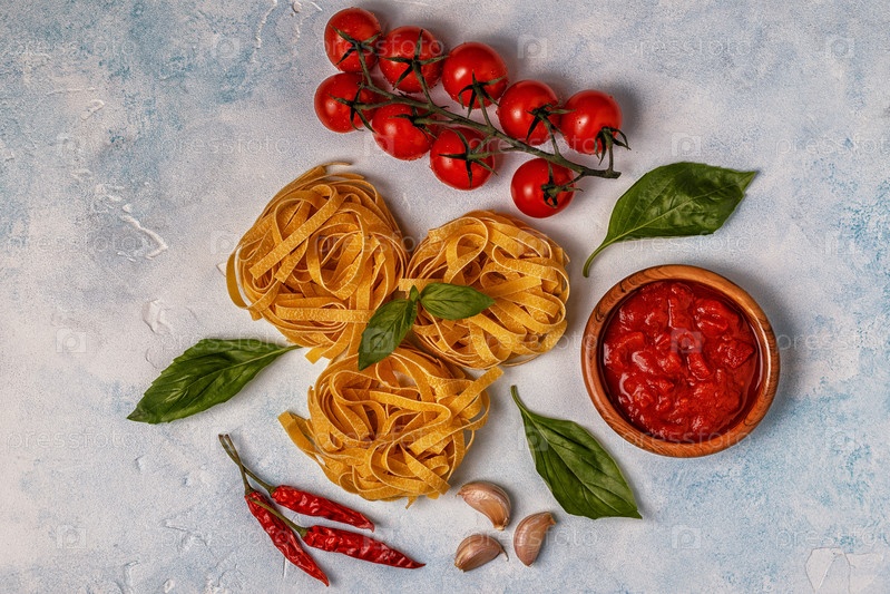 Фон итальянской кухни с макаронами, специями и овощами
