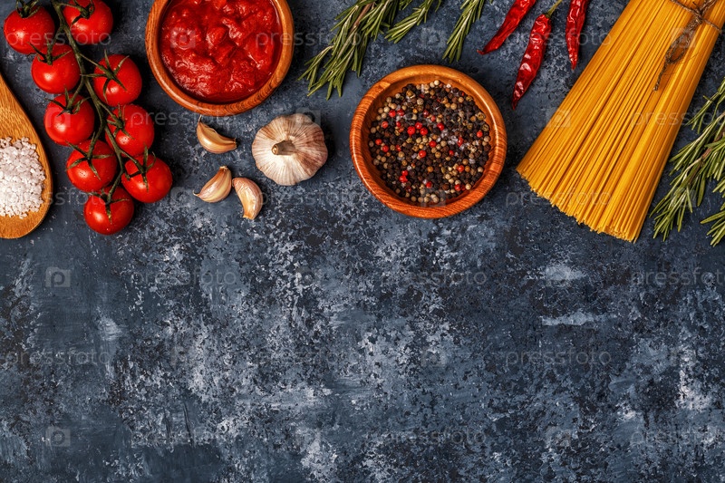Фон итальянской кухни с макаронами, специями и овощами