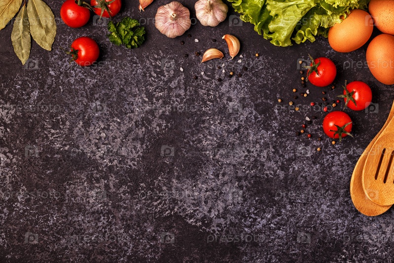 Ингредиенты для приготовления пищи на темном бетонном фоне