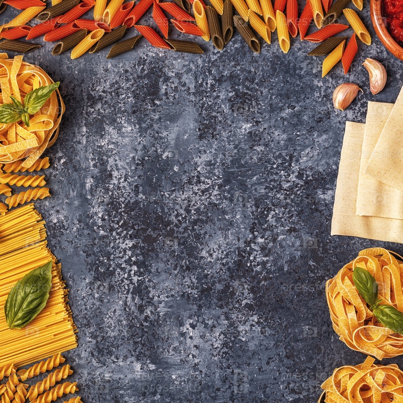 Фон итальянской кухни с макаронами, специями и овощами
