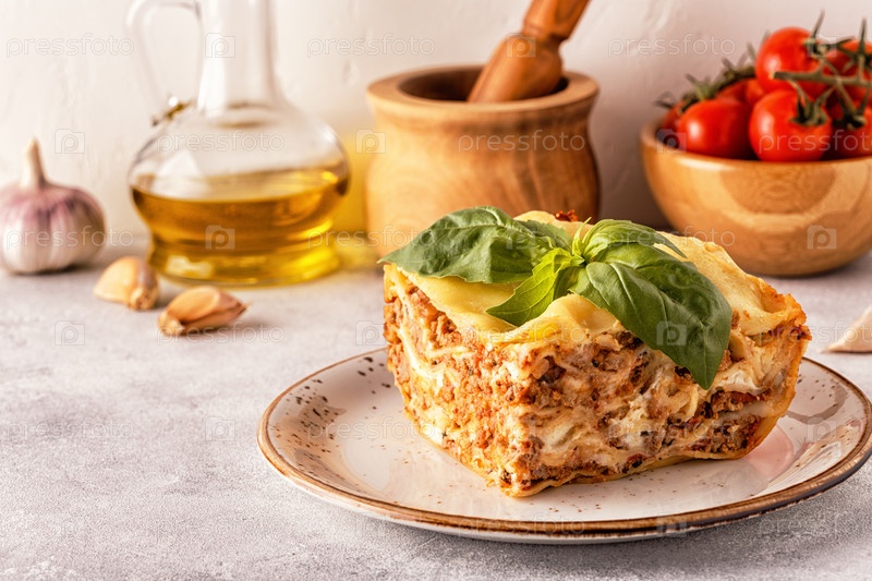 Традиционная лазанья с соусом болоньезе из говяжьего фарша и соусом бешамель