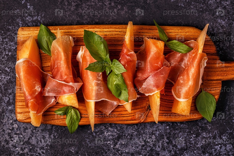 Свежая дыня с прошутто и базиликом