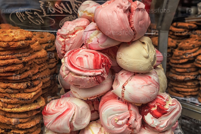 Витрина с безе в магазине