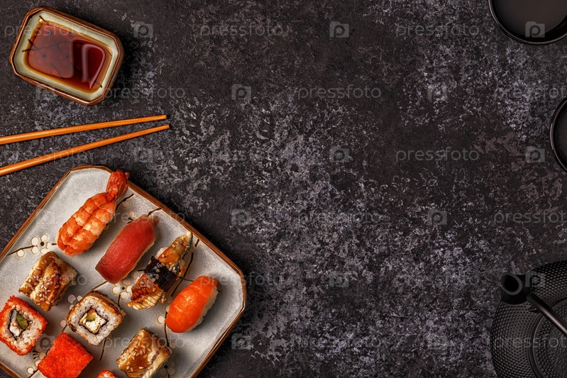 Суши-сет: суши и суши-роллы на тарелке