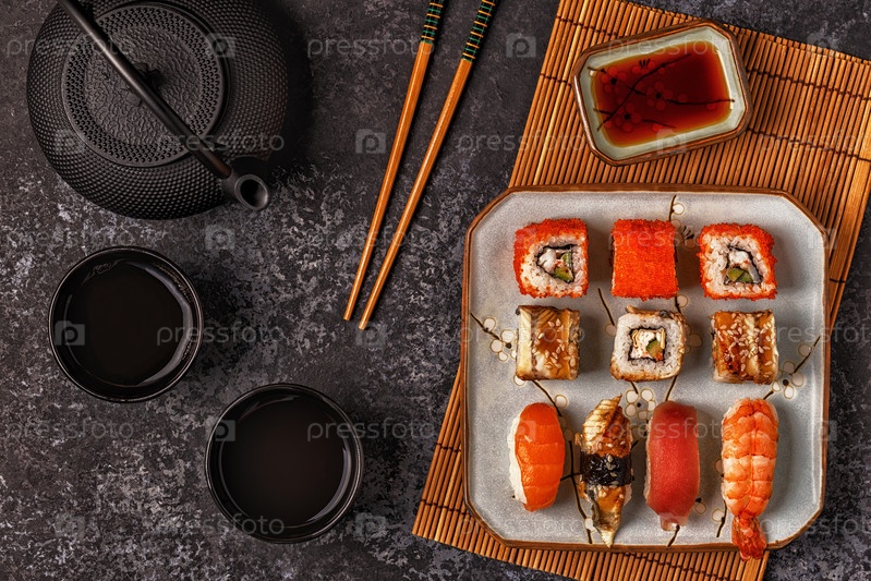 Суши-сет: суши и суши-роллы на тарелке