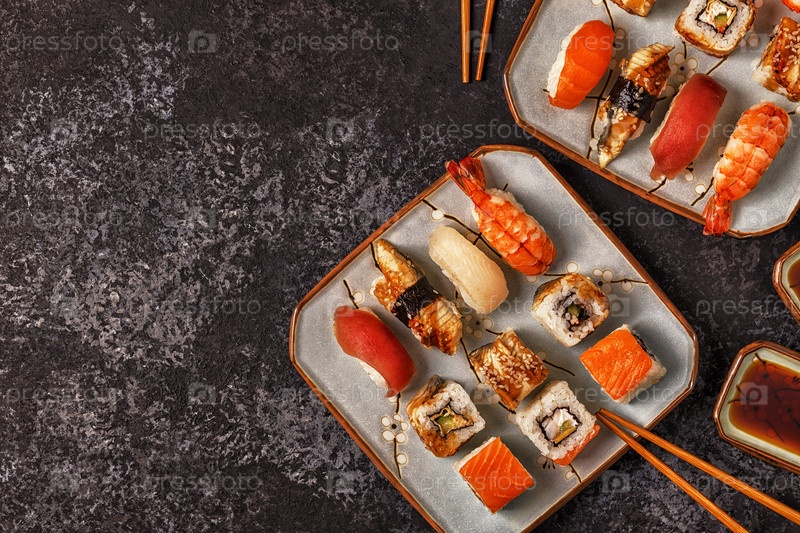 Суши-сет: суши и суши-роллы на тарелке