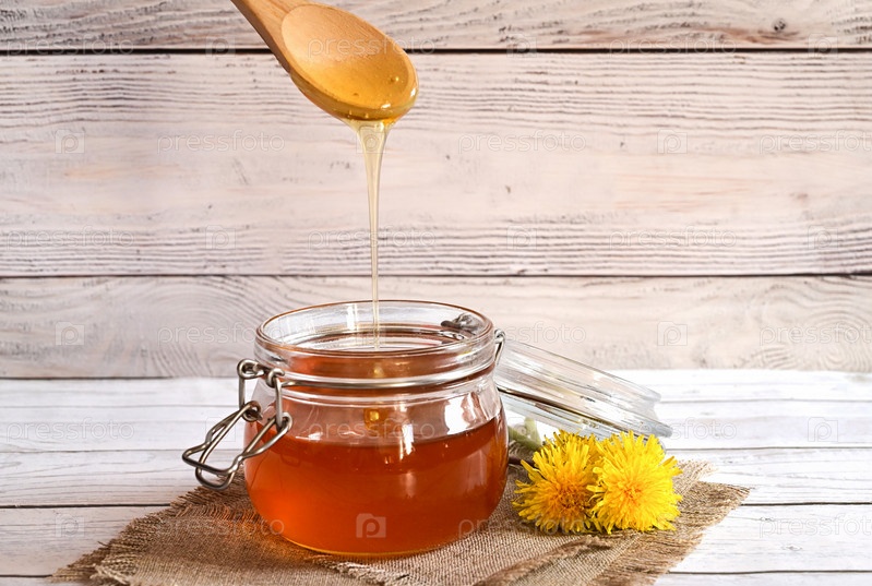 Варенье из одуванчиков в стеклянной банке. Концепция здоровья. Жизнь без холестерина