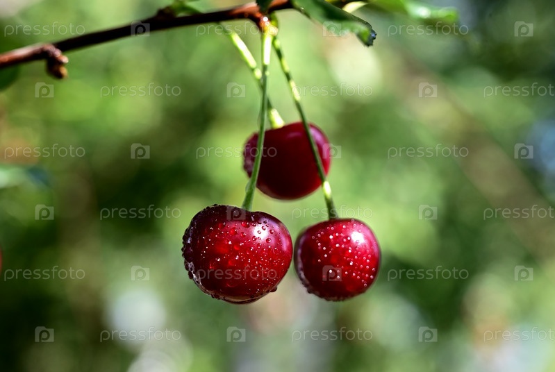 Спелые ягоды вишни на ветке
