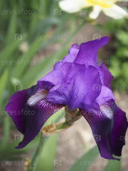 Вид сверху на фиолетовый цветок ириса