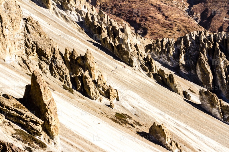 Туристы едут к озеру Тиличо (Тиличо Таль 4920 м). Трек к Аннапурне, Гималаи, Непал