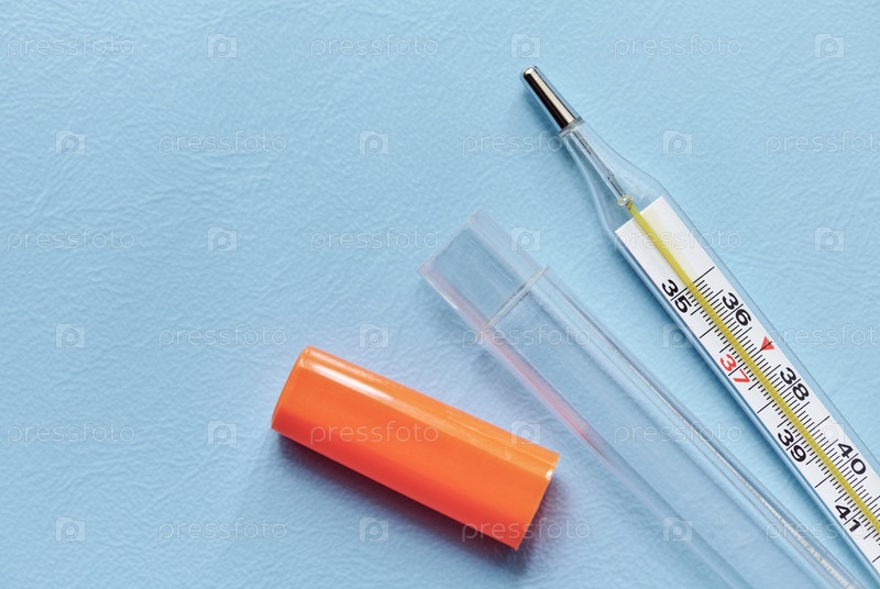 Ртутный термометр на синем фоне