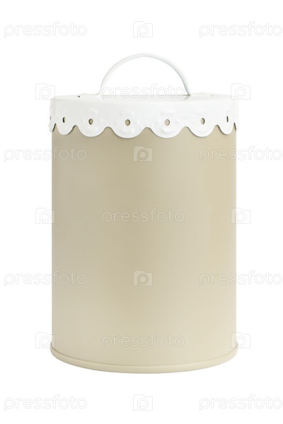 Цилиндрическая жестяная банка с крышкой для кофе и чая на белом фоне