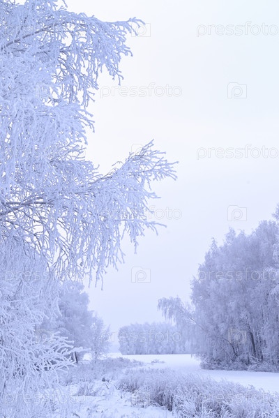 Зимний лес в мороз, дом в зимнем лесу, морозный день