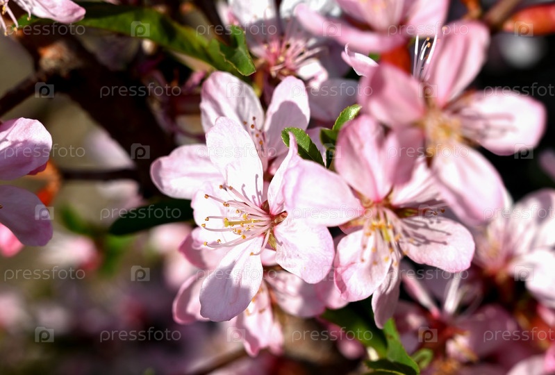 Розовая вишня сакуры крупным планом на фоне природного парка