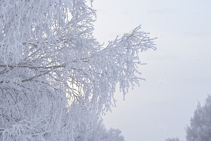 Зимний лес в мороз, дом в зимнем лесу, морозный день