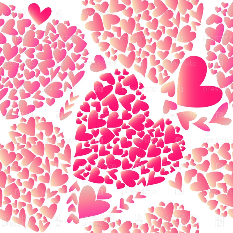 Бесшовный фон из сердец. Набор красивых сердец. Векторная иллюстрация на белом фоне