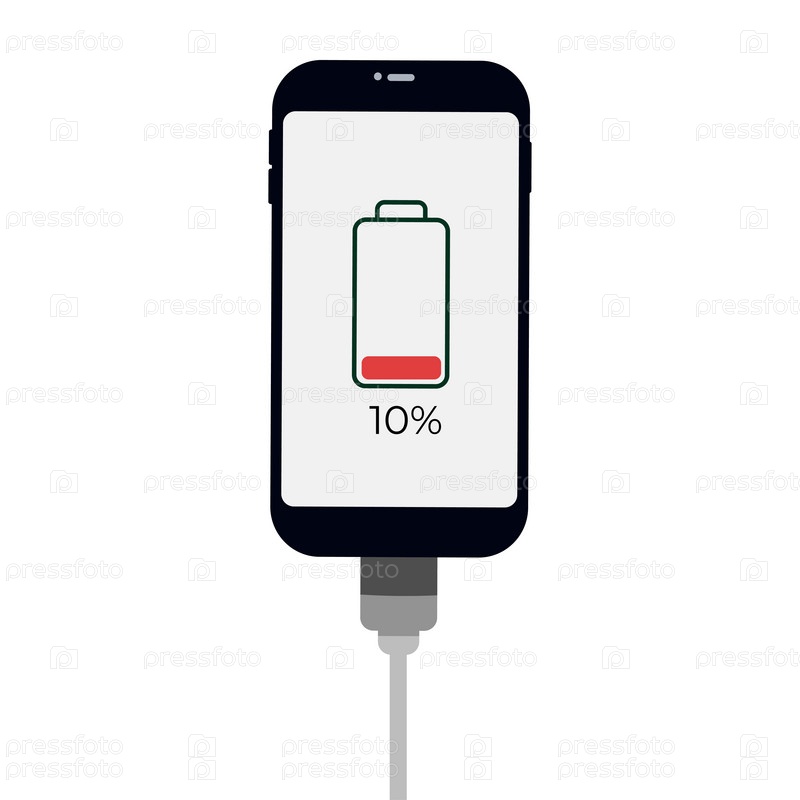 Смартфон с индикатором уровня зарядки батареи и подключением USB.Векторная инфографика