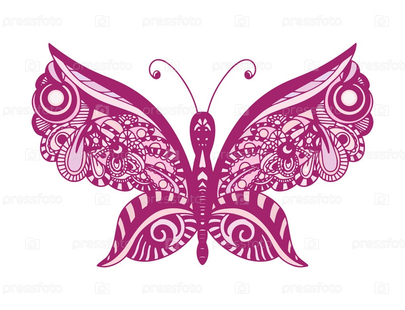 Декоративный элемент в виде бабочки в стиле зентангл. Шаблон для оформления открыток, футболок, постеров, татуировок, рисунков хной
