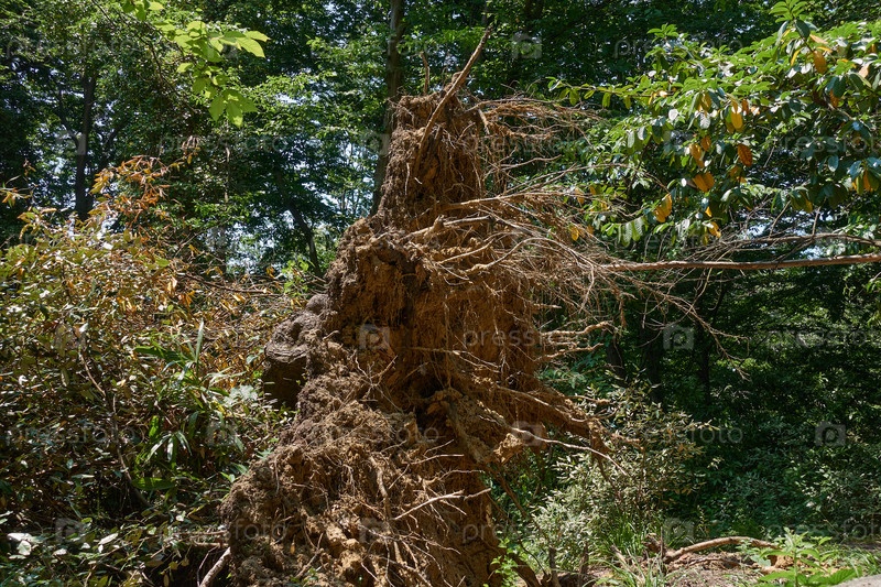 Дерево, вырванное с корнем из земли. Ураган повалил в лесу столетнее дерево, обнажив старые длинные корни