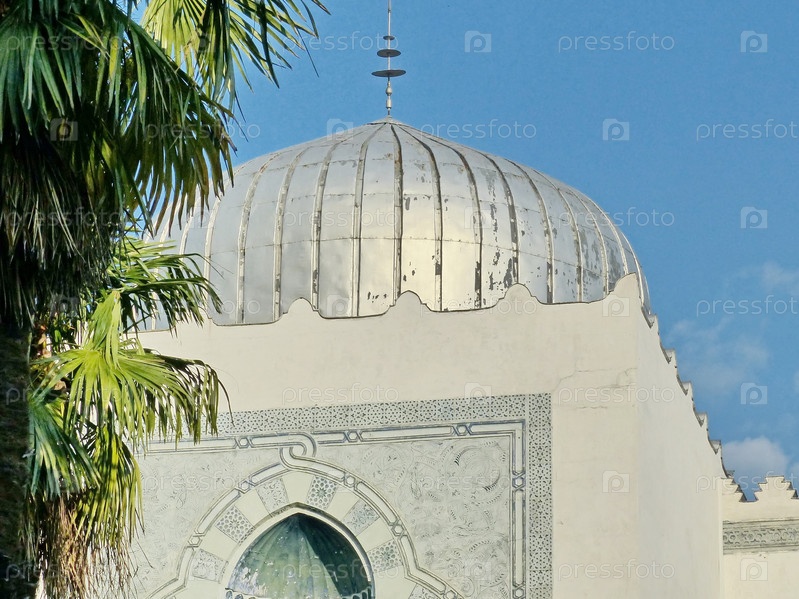 Дворец Дюльбер. Здание в восточном стиле построено по эскизам великого князя Петра Романова, в духе древних храмовых построек Каира в 1895-1897 годах архитектором П. Красновым. Южный берег Крыма, Кореиз, Россия, сентябрь 2019