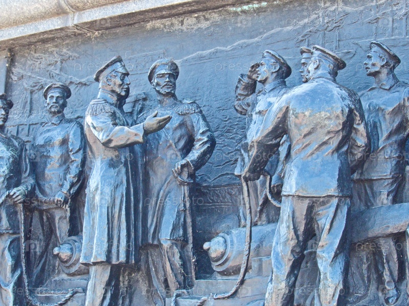 Фрагмент горельефа "Беседа с матросами" на постаменте памятника П.Нахимову. Памятник открыт 18 ноября 1898 года, в 45-ю годовщину Синопской битвы. Севастополь, Россия, сентябрь 2021
