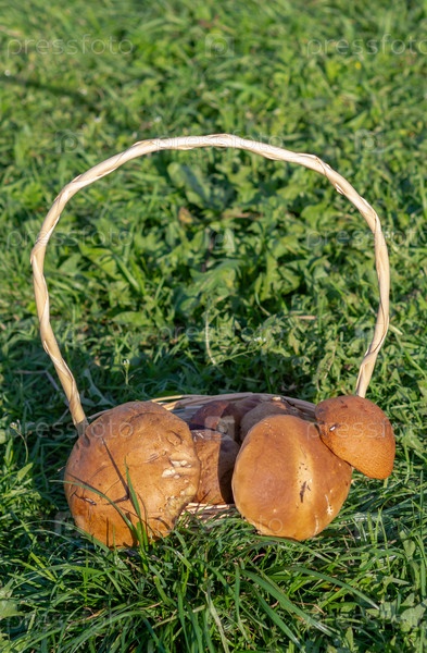 Полная корзина ароматных съедобных грибов, собранных в лесу