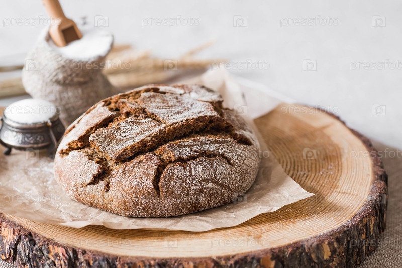 Свежий вкусный хлеб крупным планом и соль. Свежеиспеченный хлеб на закваске с золотой корочкой на деревянной доске. Контекст пекарни с вкусным хлебом. Кондитерские изделия