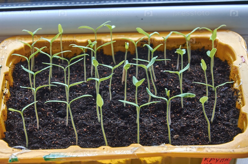 Маленькие саженцы помидоров в лотке для рассады