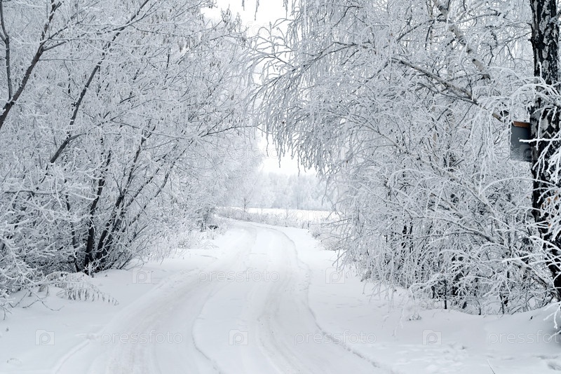 Зимний лес в мороз, дом в зимнем лесу, морозный день