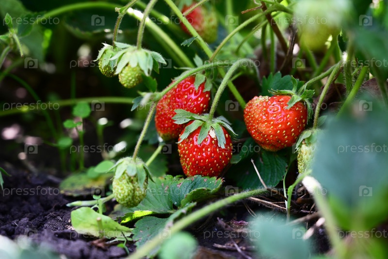 Свежая доморощенная клубника в миске между кустами клубники. Спелые красные ягоды, собранные в домашнем саду. Летние фрукты яркий красочный фон