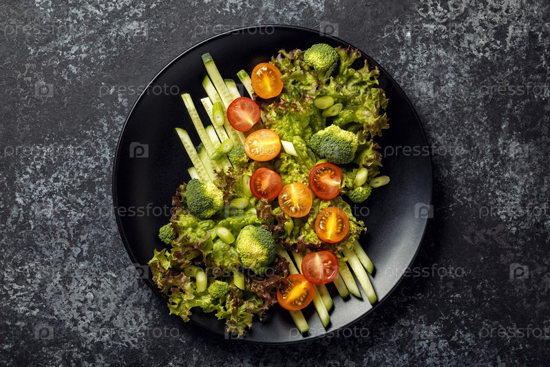 Салат из свежих овощей, вид сверху