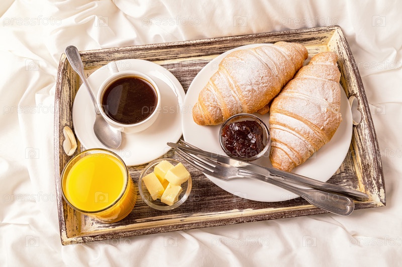 Завтрак в постель с кофе и круассанами