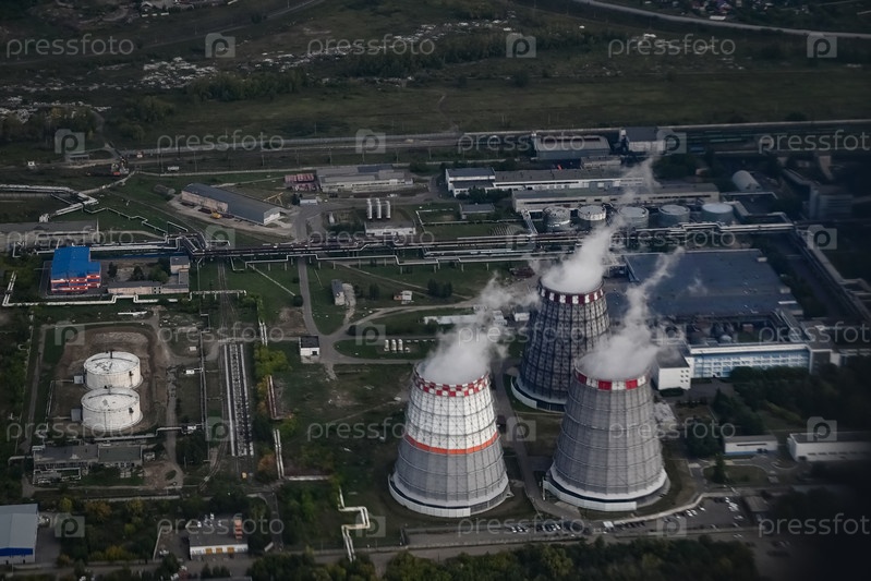 Вид с самолета при посадке на промышленный город