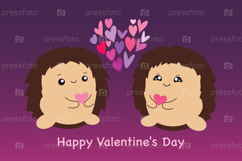 Симпатичные ежики. Валентина с любовниками. Векторная иллюстрация на розовом фоне