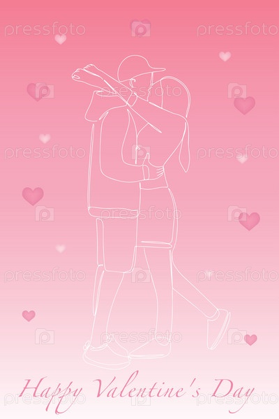 Открытка с Днем Святого Валентина. Силуэт обнимающих влюбленных. Объятия мужчины и женщины. Векторная иллюстрация