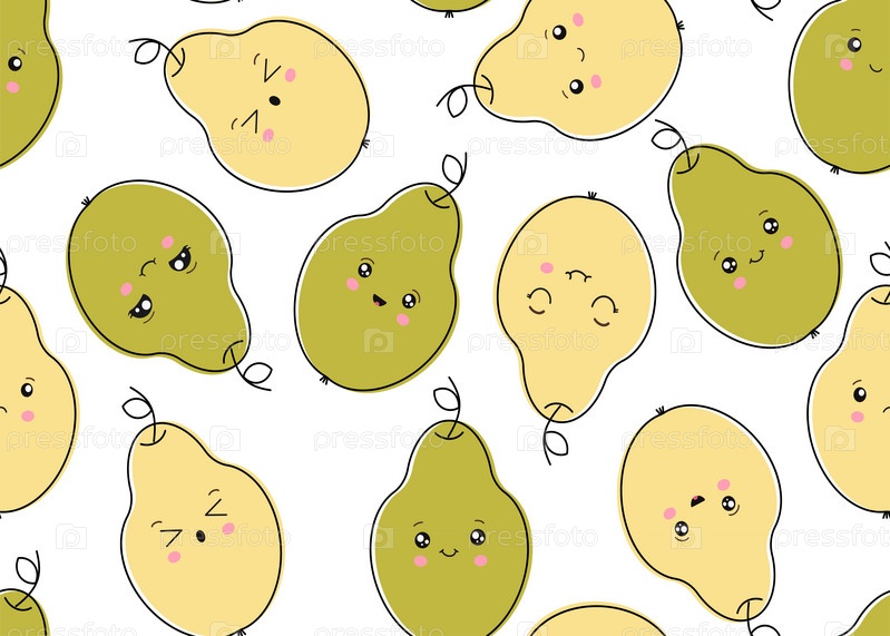 Бесшовные зеленые груши на белом фоне. Векторная иллюстрация для вашего дизайна