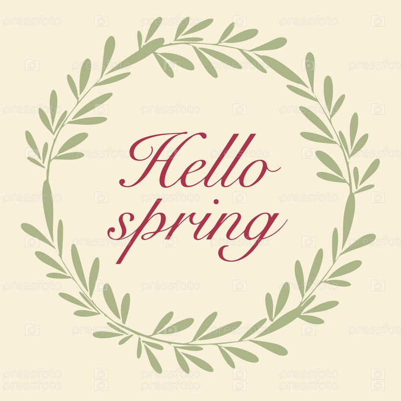 Логотип Hello spring в плоском стиле с цветами, листьями и геометрическими фигурами