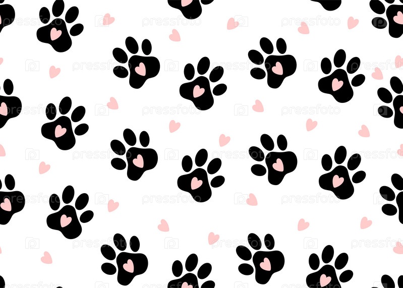 Бесшовный рисунок отпечатков лап животных. Векторная иллюстрация на белом фоне