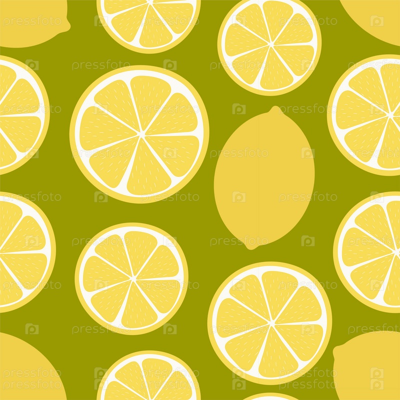 Бесшовный узор из желтого лимона. Векторная иллюстрация на зеленом фоне