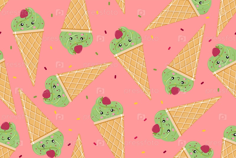 Бесшовный узор из мороженого. Векторная иллюстрация на розовом фоне